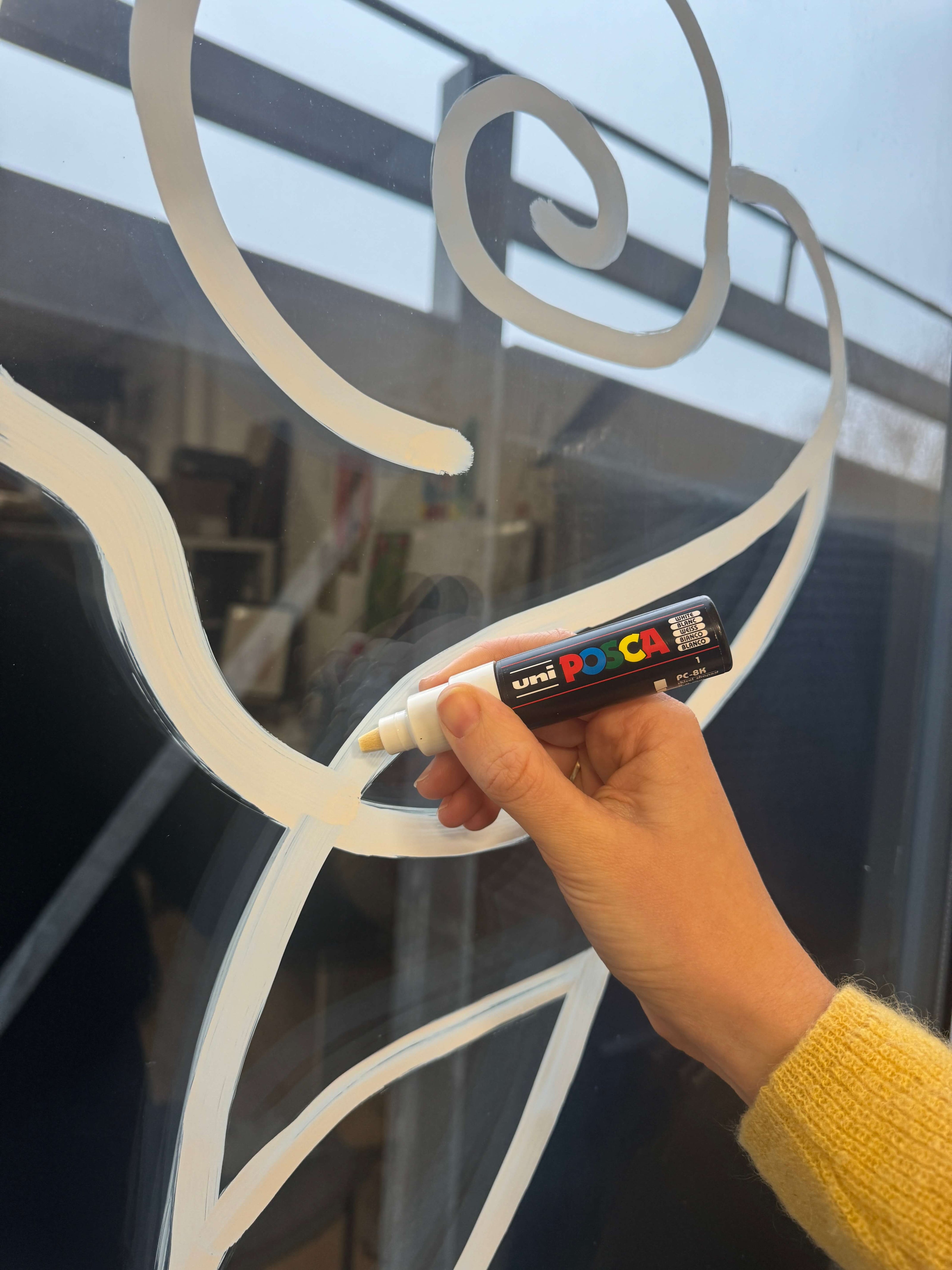 Ik ontwerp en teken volledig op maat gemaakte illustraties, afgestemd op jouw merk, seizoen of campagne. De tekeningen worden met acrylmarkers direct op het raam aangebracht. Ze zijn smudge-proof, blijven goed zitten en zijn tegelijkertijd eenvoudig te verwijderen zodra je toe bent aan een nieuw ontwerp.